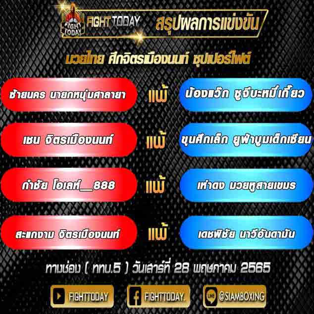 สรุปผลการแข่งขัน มวยไทย ศึกจิตรเมืองนนท์ ซุปเปอร์ไฟต์
